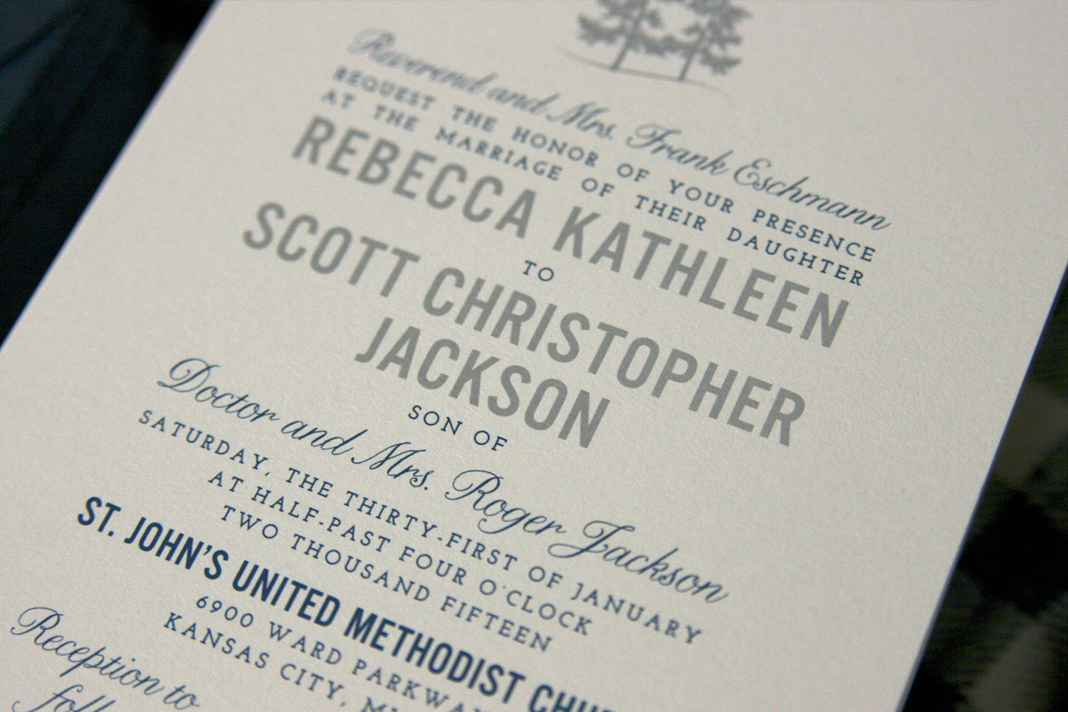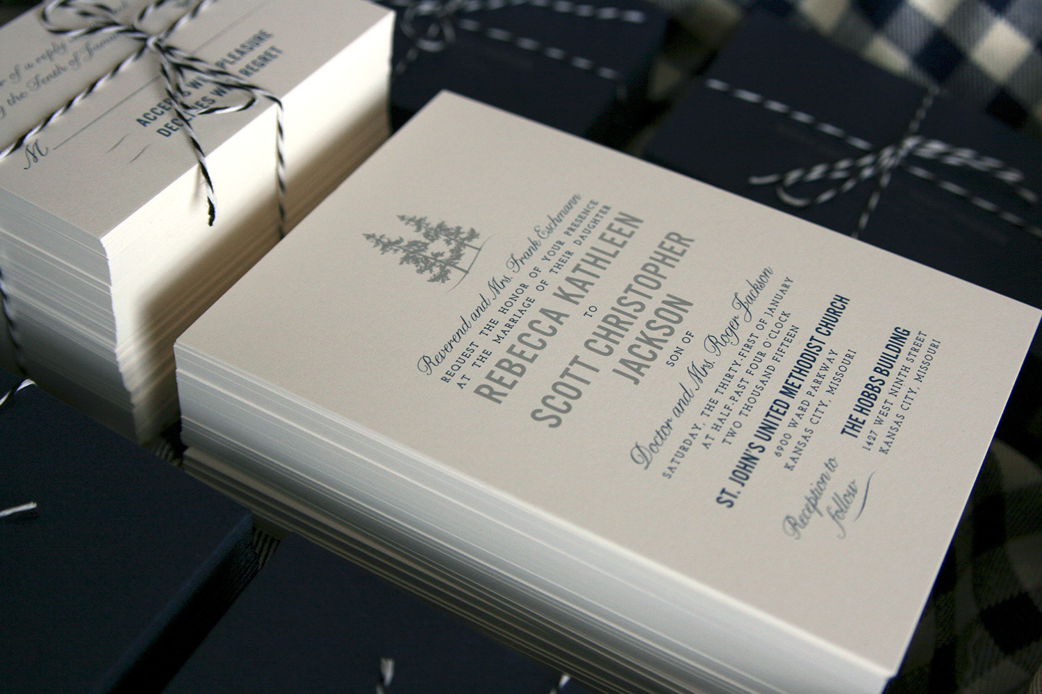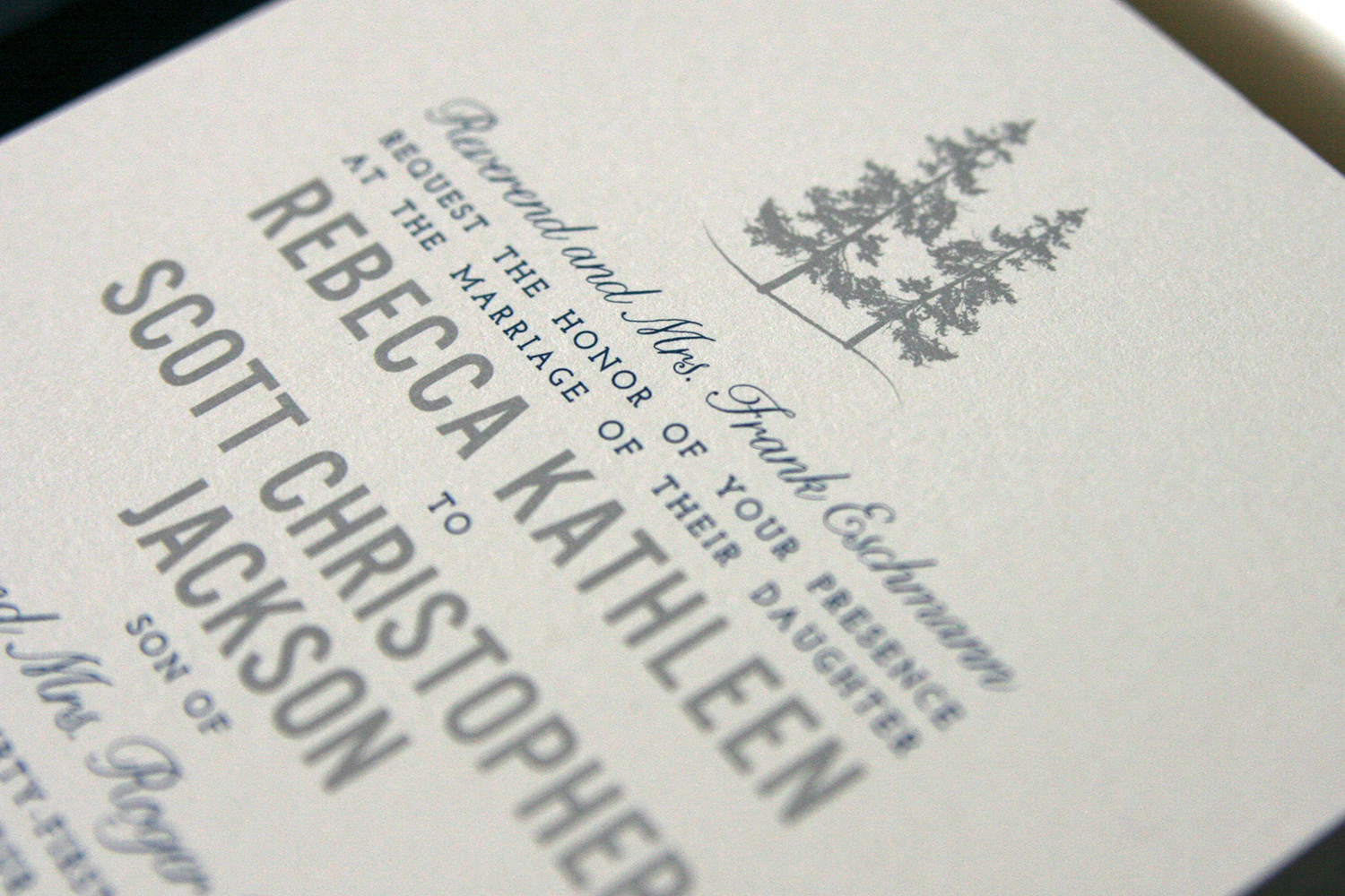 Rebecca and Scott’s Wedding is the idyllic combination of winter elegance and charm. Touches of silver and navy blue bring to live delicately frosted pine trees and a medley of typography.