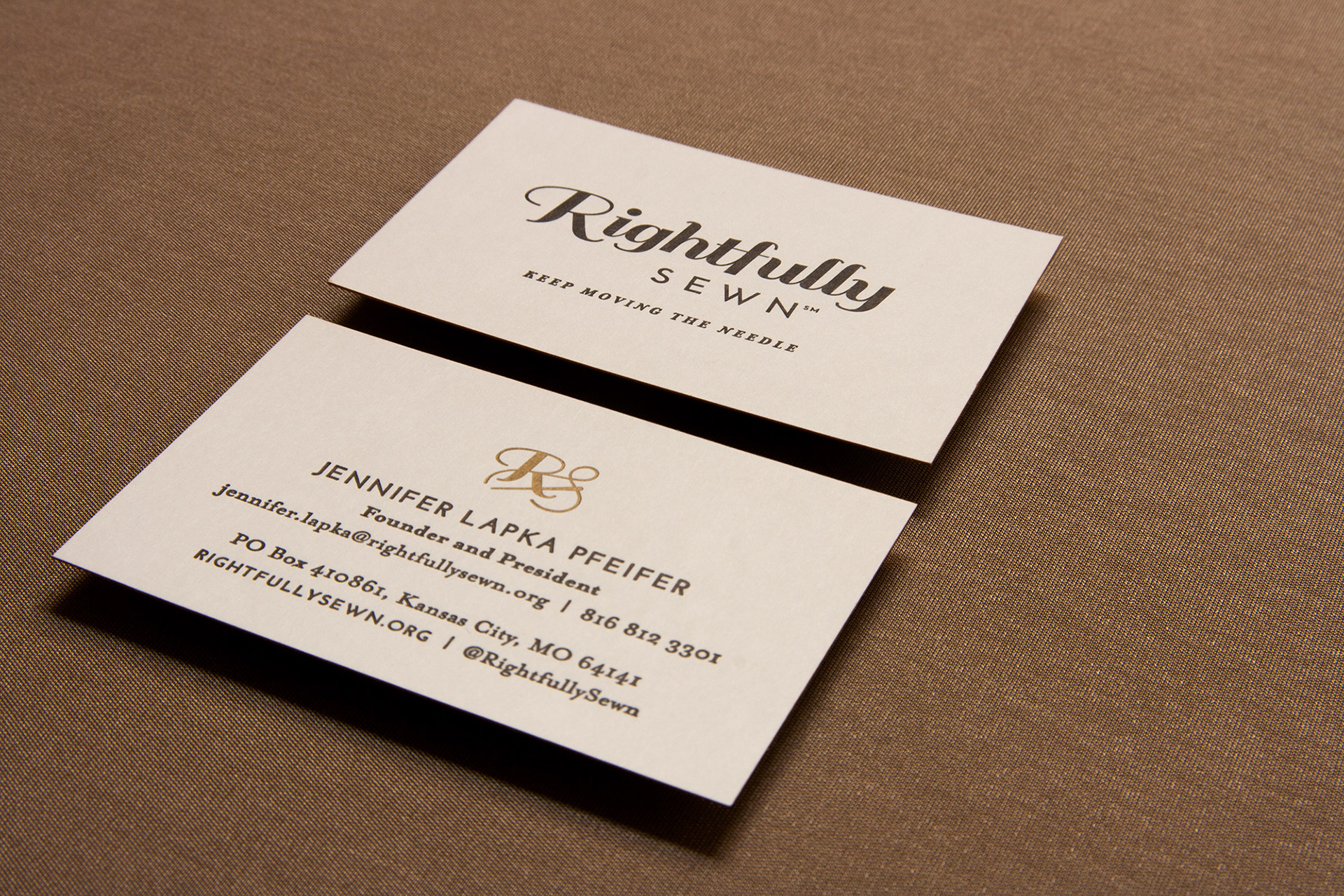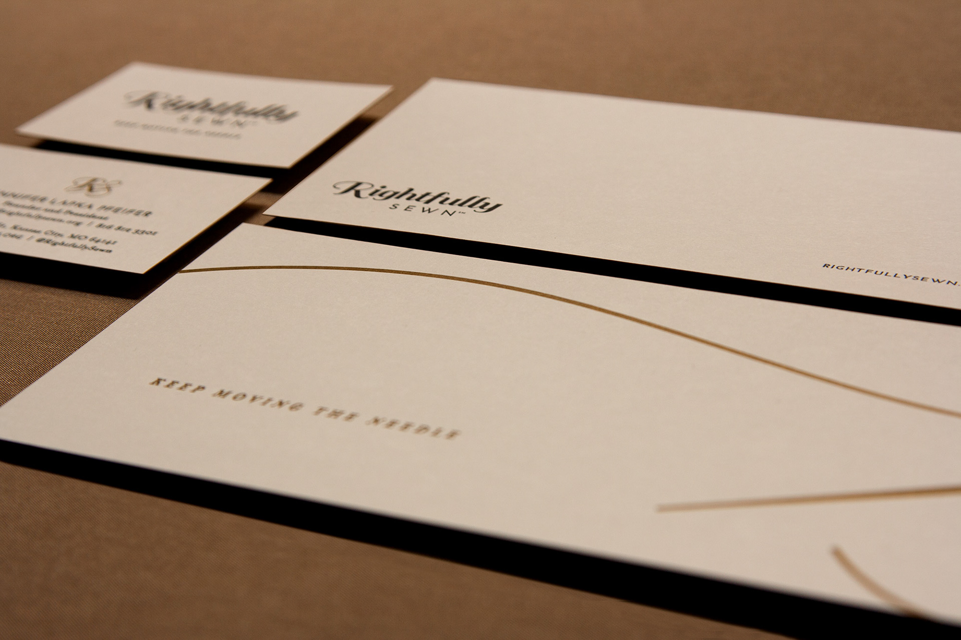 Inspired by designer labels from Kansas City's garment district in the 20th century, this mark is bold, memorable and a bit nostalgic. The icon incorporates a needle and thread symbol to form the "S" in Rightfully Sewn.